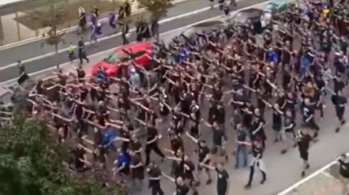 Dinamo Zagreb fans walk the streets of Milan performing nazi salutes... 🇮🇹😲🇭🇷pic.twitter.com/FxKoDKc3y1