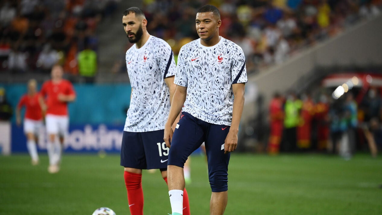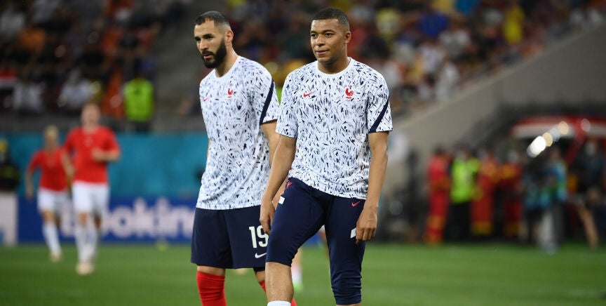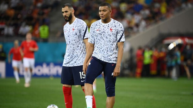Compañeros y amigos. Karim Benzema y Kylian Mbappé, inseparables en la concentración de la selección francesa. No compartirán vestuario en el Real Madrid, al menos de momento.