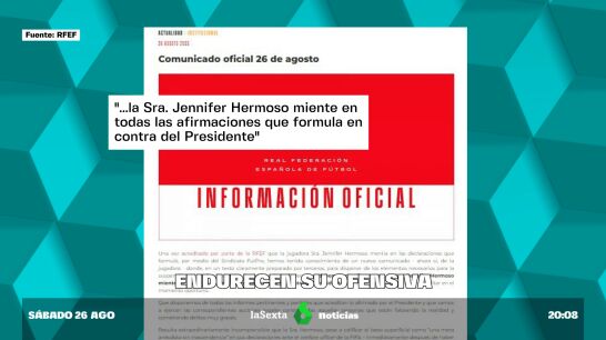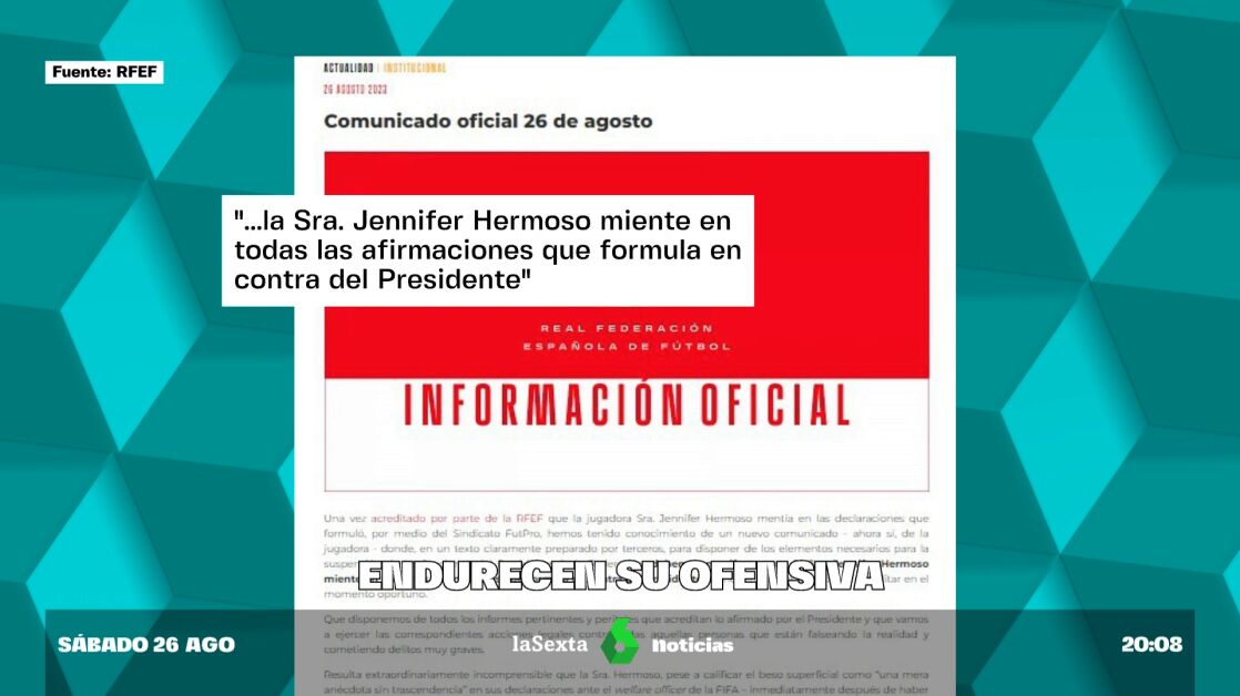 La RFEF, en un nuevo comunicado, ha pasado al ataque contra Jenni Hermoso. En dicho texto, recogido en EFE, la Federación llega a decir que la futbolista ha sido "abducida" por FutPro.