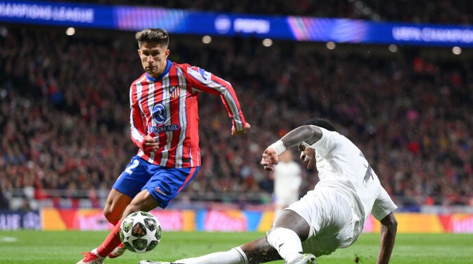El jugador del Atlético la tocó con la mano en su área, pero ni el colegiado ni el VAR consideraron que fuera penalti.
