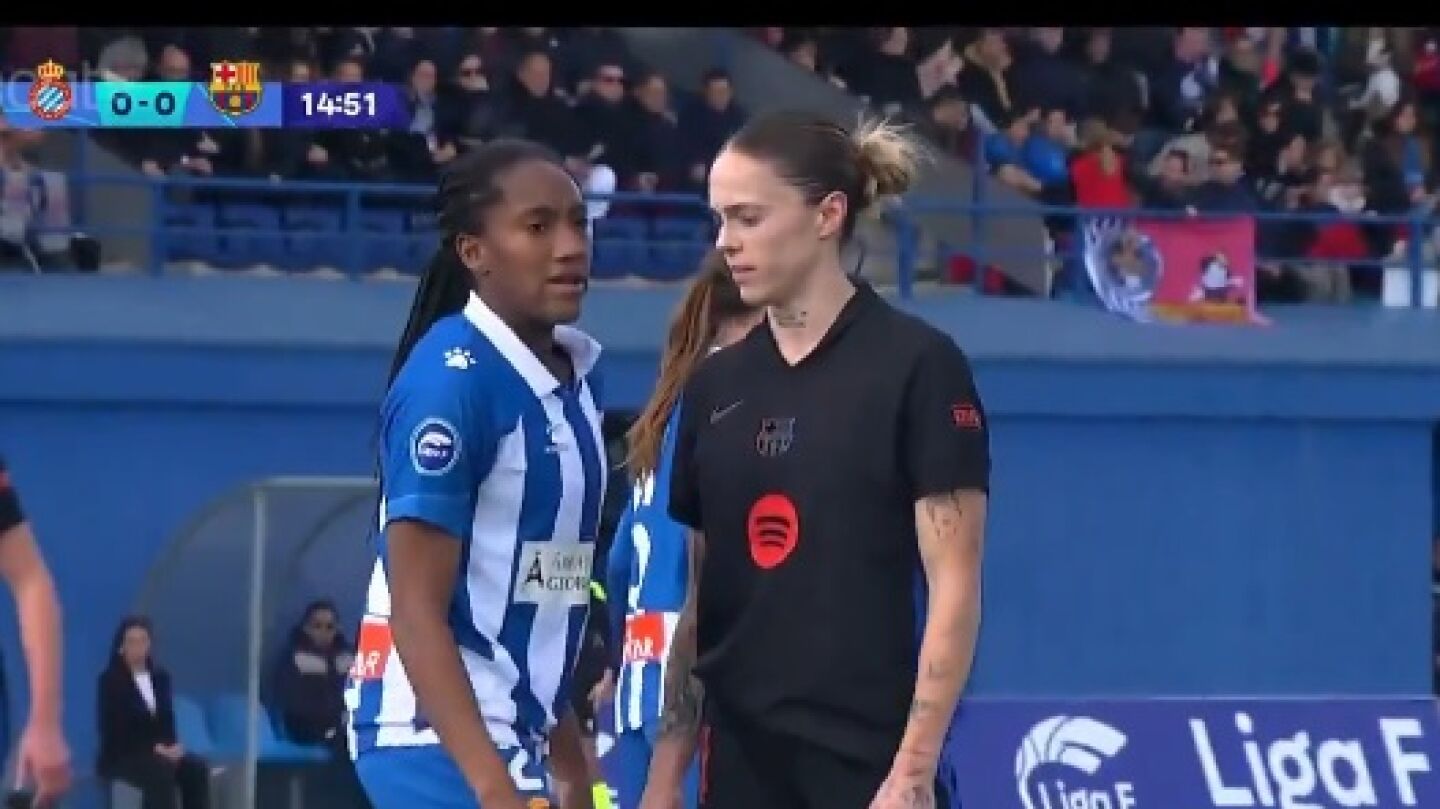 Polémica por el gesto de Mapi León tocando los genitales a Daniela Caracas, jugadora del Espanyol