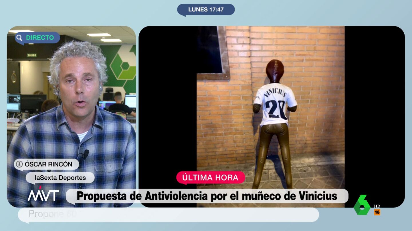 El Comité de Antiviolencia propone una sanción de 60.000 euros y dos años sin pisar un recinto deportivo para los cuatro aficionados que colgaron un muñeco de Vinicius con una pancarta en la que se leía "Madrid odia al Real".