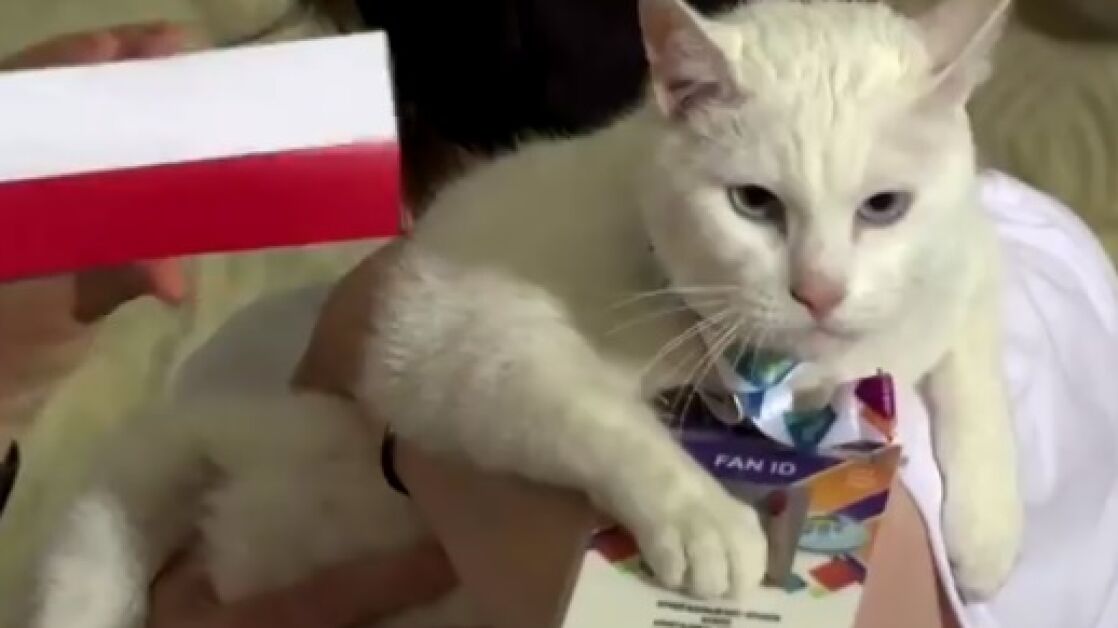 El gato Aquiles se ha convertido en todo un personaje en Rusia, donde reside, desde que en el pasado mundial de 2018 acertara con varias predicciones sobre los resultados de los partidos.