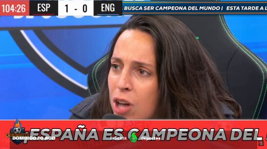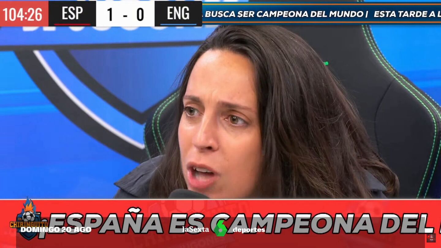 La final del Mundial recién conquistado por España se vivió al máximo en el Twitch de 'El Chiringuito'. Andrea Segura, periodista de laSexta y comentarista del duelo, estuvo al borde de las lágrimas tras un triunfo histórico.