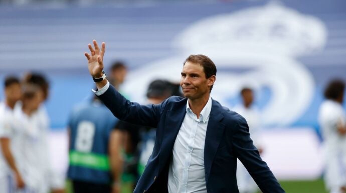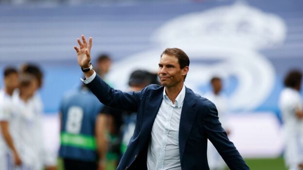 El tenista manacorí se encuentra en Madrid, donde va a disputar el Mutua Madrid Open y ha acudido al Santiago Bernabéu a patear el esférico en los prolegómenos del encuentro, donde ha sido protagonista. Con pierna izquierda y entre los aplausos de la afición madridista, que está de celebración, Nadal, socio de honor del club desde 2011, ha golpeado el balón.