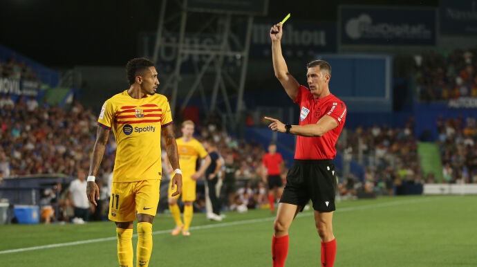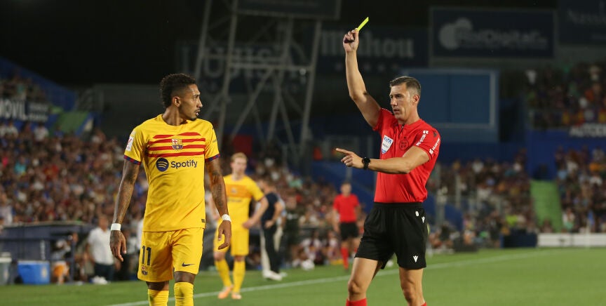 Raphinha fue uno de los protagonistas en el partido contra el Getafe. El atacante brasileño estaba siendo el jugador más incisivo del Barça hasta que dio un codazo a Gastón sin la opción de disputar el balón.