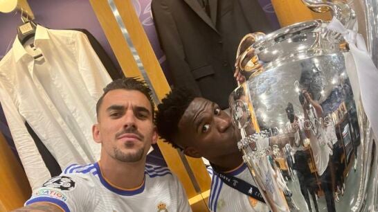 "Tito Cristóbal Soria, tenemos algo que enseñarte...", escribió el centrocampista. Un mensaje acompañado de una imagen en la que Ceballos aparece con Vinicius y la copa de la Champions.