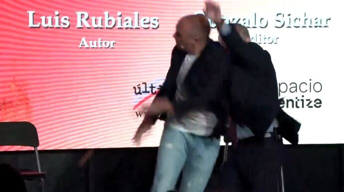 Agitada presentación del libro de Luis Rubiales, 'Matar a Rubiales', este jueves en Madrid.