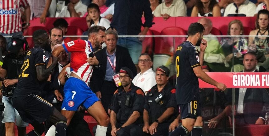 Nacho vio la roja directa ante el Girona. El central del Real Madrid realizó una durísima entrada sobre Portu en mediocampo que terminó con su rival saliendo del campo en camilla.