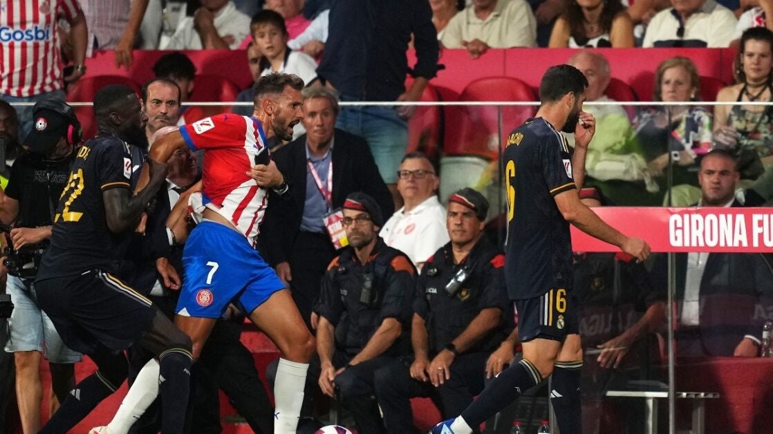 Lo de después, tangana, con la seguridad privada teniendo que intervenir al ir Stuani directo a por Nacho.