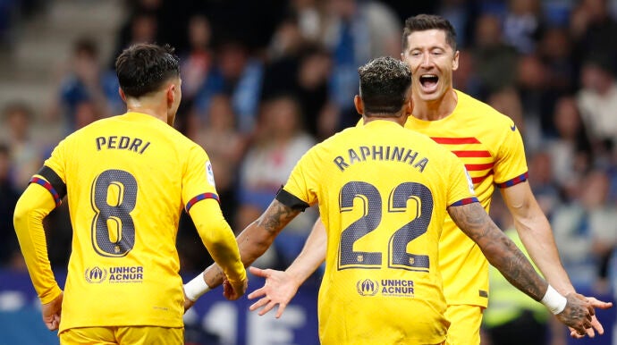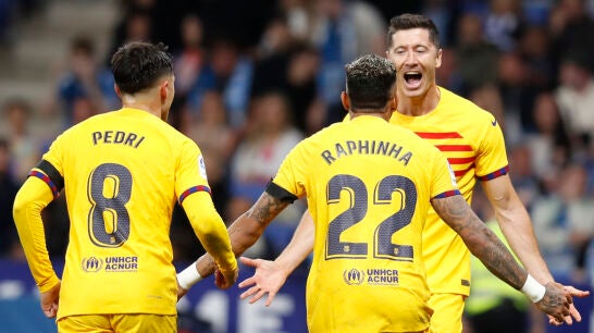 Así pues, Balde hizo el segundo. A pase de Pedri. Y en el 40', Lewandowski volvió a mojar para dejar prácticamente sentenciado el encuentro. Para poner LaLiga en 'loading' y para que no pocos aficionados del Espanyol o bien llorasen o bien abandonasen el verde en el descanso.