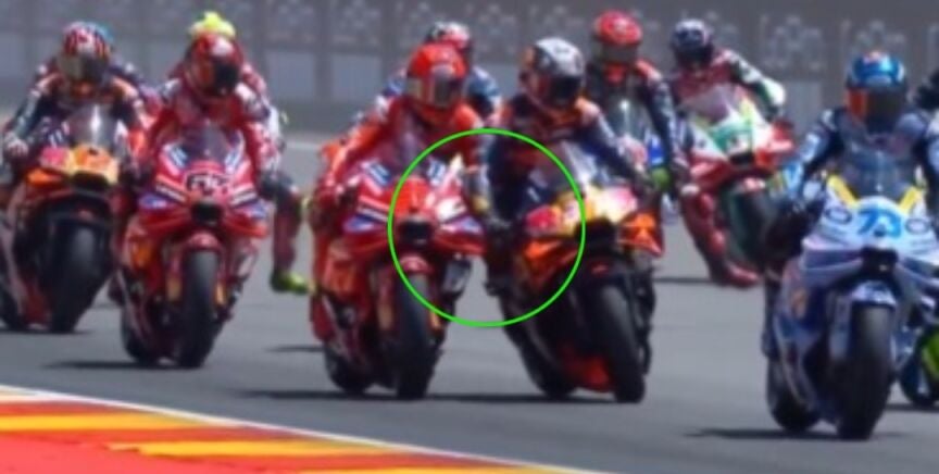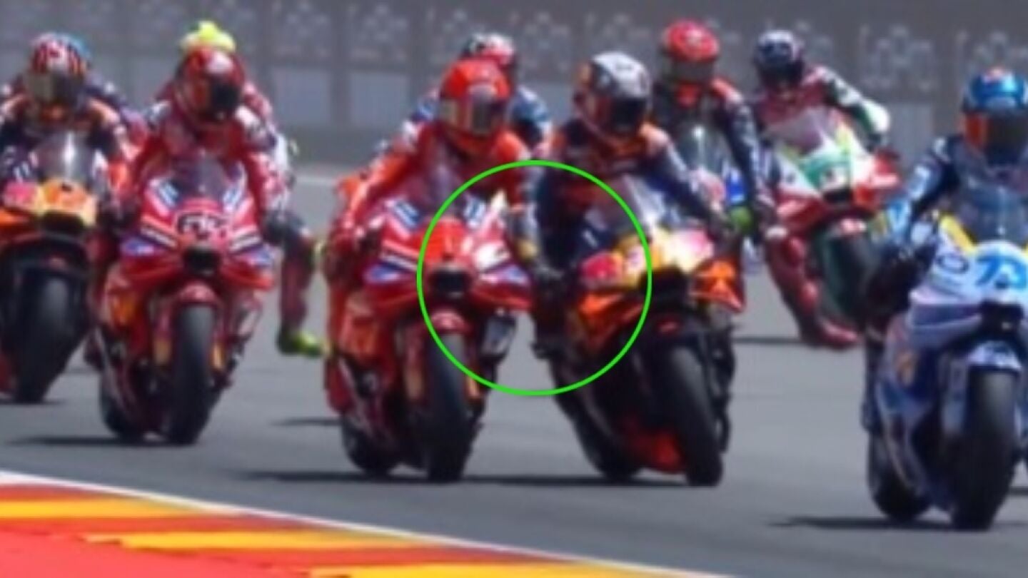 El de KTM y el de Ducati se tocaron brazo con brazo en la salida al sprint de Aragón: "Él ha salido un poco mal y yo bien".