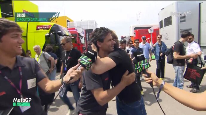 Cosas que pasan en el paddock. Cosas que suceden en, por ejemplo, Montmeló. Que te encuentras con gente. Con conocidos. Con leyendas y mitos. Es lo que sucedió cuando Damián Montero e Isabel Romero, del equipo de Atresmedia, hablaban con Álex Crivillé. Es lo que pasó cuando, de repente, por ahí se dejó caer Sete Gibernau.