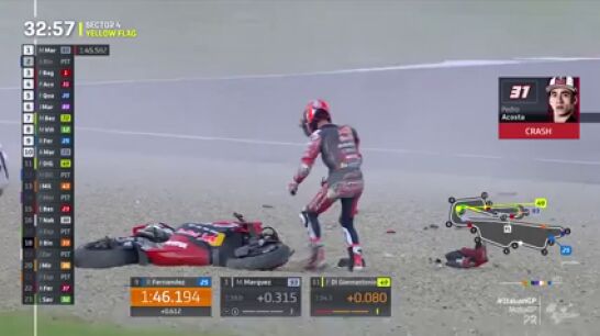 Rápido se levantó para ir directo a boxes con el objetivo de coger la segunda unidad y proseguir con la sesión en Mugello. Lo cierto es que si se hizo daño no se notó en absolutamente nada.