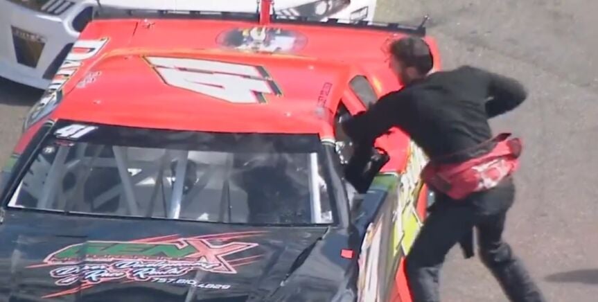 Andrew Grady agredió repetidamente a Davey Callihan sin dejarle salir de su coche tras un accidente que tuvieron ambos durante una carrera de una categoría inferior de la NASCAR.