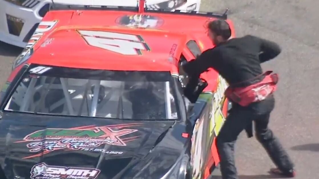 Brutal agresión en la NASCAR: un piloto enloquece y golpea repetidamente a otro sin dejarle salir de su coche