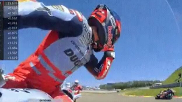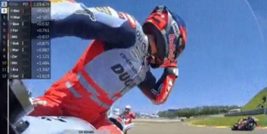 Marc Márquez salió más que enfadado de la Q1 del Gran Premio de Alemania de MotoGP. Todo, por lo sucedido en su última vuelta. En ese último intento que, de no haber sido por lo que fue, habría supuesto su clasificación para la Q2. Pero no. El catalán cayó. Y cayó porque se encontró con Stefan Bradl en el medio de la pista.