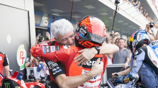 "Marc coronó una temporada estratosférica el día en el que finalmente Pecco recuperó su plena competitividad tras unos meses muy complicados y protagonizó un fin de semana que solo puede aplaudirse. Todo ello en el circuito de rivales que han escrito la historia de MotoGP y con los que ahora compartimos el récord de podios consecutivos, 83", escribe el ingeniero italiano.
