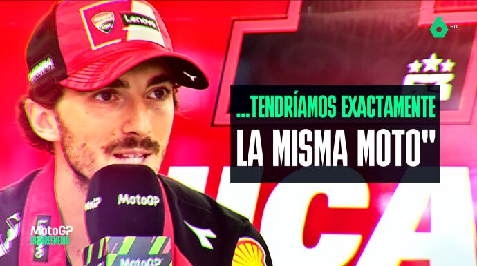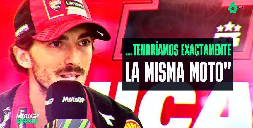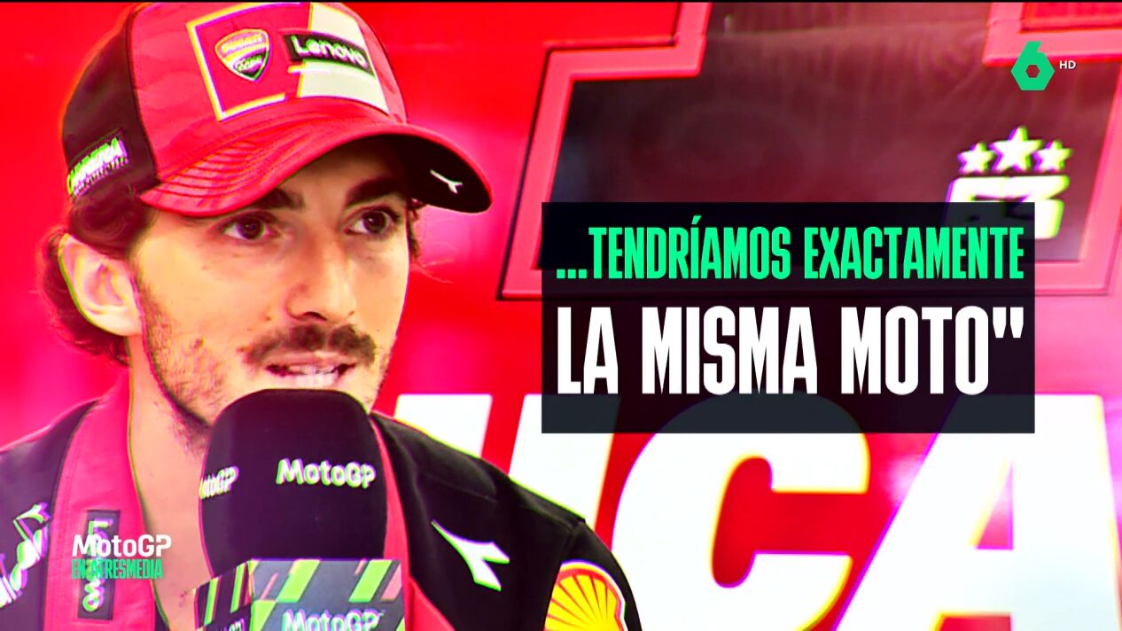 Pecco Bagnaia ha avisado a Márquez. El italiano, en laSexta, ha hablado de esos mensajes que hay este año sobre las diferencias de las Ducati y ve un reto competir con Marc con la misma moto.