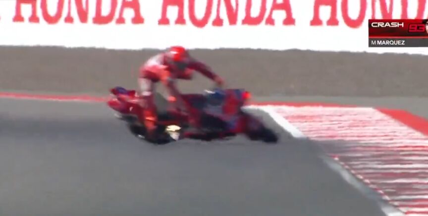 Jornada negra para Ducati y muy accidentada para Marc Márquez en Mandalika. Por primera vez desde 2023, las dos motos oficiales se han quedado fuera de la Q2.