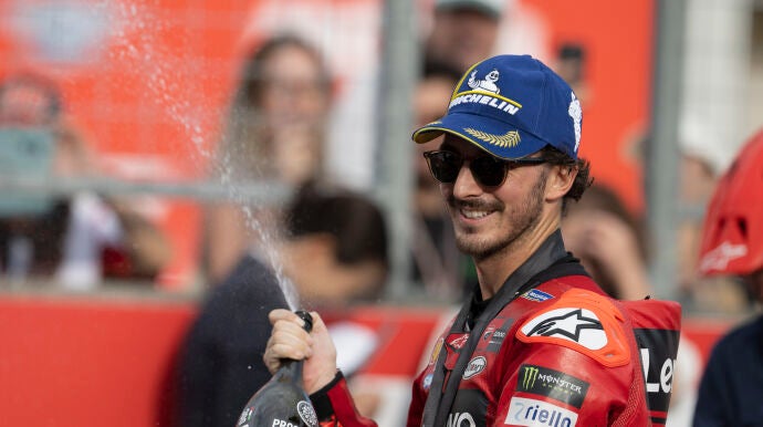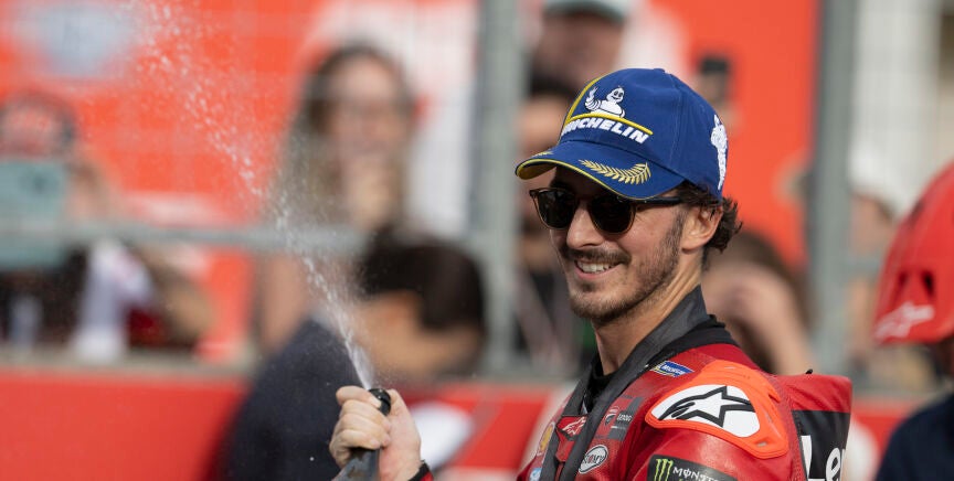 Al cruzar la línea de meta, Pecco se puso de pie sobre la Ducati y se llevó la mano a la oreja. Gesto que repitió cuando subió al podio. Cuenta con 18 puntos de ventaja en el campeonato del mundo.