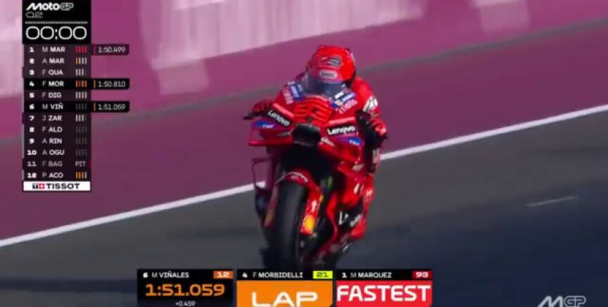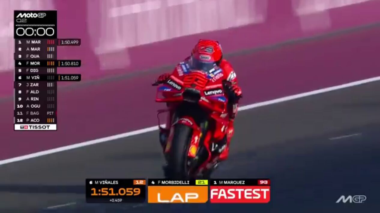 El piloto de Ducati cogió la rueda de Morbidelli para ser el último en cruzar por línea de meta y lograr una nueva 'pole position', que le permitirá ser primero tanto en la 'sprint' del sábado, como en la carrera del domingo. 1:50.499, ese es el tiempo con el que Marc Márquez ha pulverizado el récord de la pista.
