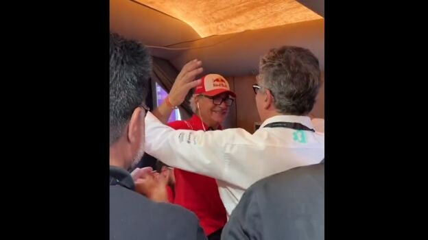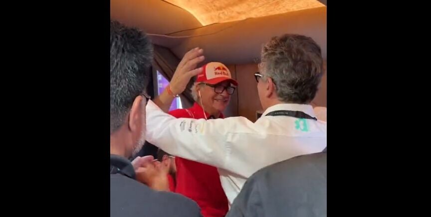 Y en cuanto Carlos cruzó la meta, Sainz soltó toda esa tensión que tenía dentro. Golpes en la mesa, sonrisas y abrazos con los que estaban junto a él presenciando el Gran Premio.