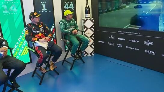 Viendo las imágenes más destacables del Gran Premio de Canadá antes de subir al podio, Max Verstappen alucinó con el toque contra el muro de Fernando Alonso. El de Aston Martin se lo tomó con humor.