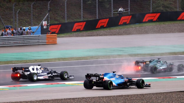 Partía quinto, su mejor posición en clasificación en años, pero rápido se le nubló la carrera a Fernando Alonso. Concretamente, en la primera curva del Gran Premio de Turquía. Pujando por la cuarta plaza con Pierre Gasly, el bicampeón del mundo se fue por el exterior y el francés no dudó en seguir su trazada, chocando con él y dejándole fuera de la lucha por las primeras posiciones.