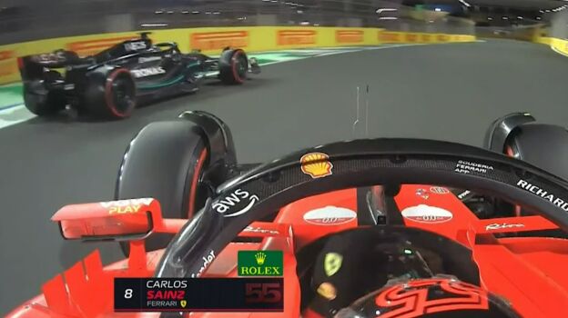 El piloto de Ferrari estaba abriendo vuelta en la Q3 de la clasificación del Gran Premio de Arabia Saudí cuando, de repente, se encontró a un George Russell que le obstaculizó al salir de boxes. A Sainz no le quedó otra que frenar y abortar su intento.