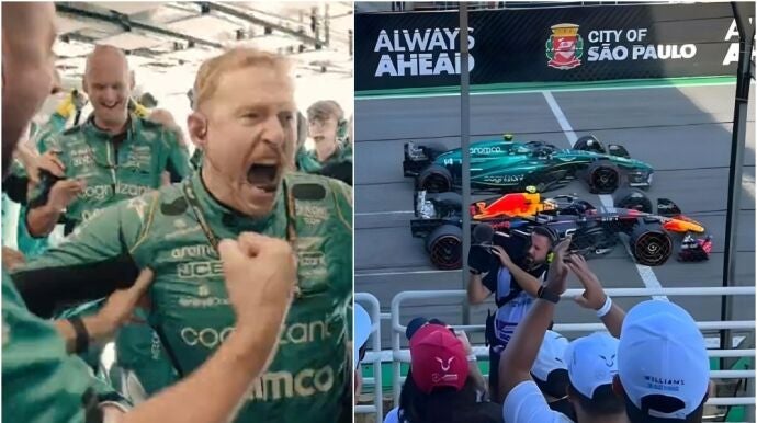 Así se vivió dentro del garaje de Aston Martin la heroicidad de Fernando Alonso ante 'Checo' Pérez en Brasil