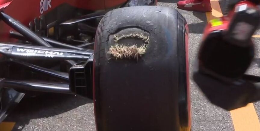 La imagen corrió como la espuma por las redes sociales dado lo llamativo del agujero. Tras el accidente de Vettel también se pudo ver cómo sus ruedas quedaron completamente inutilizables al pisar el freno a fondo para evitar chocar contra las protecciones.