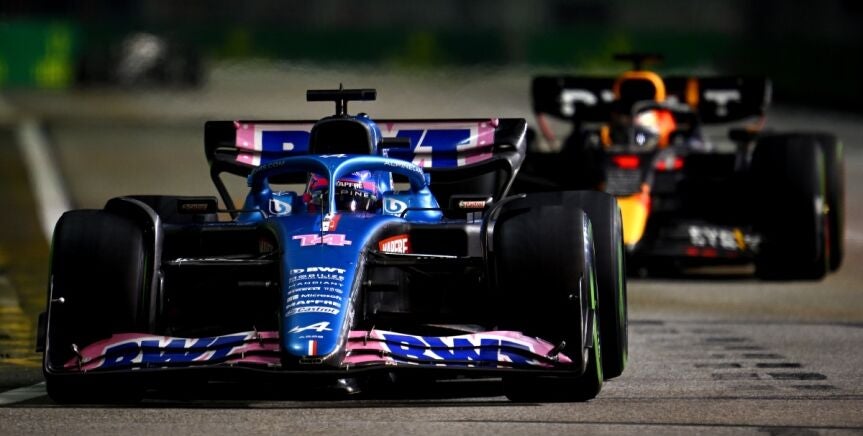 Ya dijo Fernando Alonso tras la clasificación en Singapur que teniendo a Max Verstappen tras él más que salir quinto era como empezar sexto. El neerlandés de Red Bull, de un coche más rápido que el Alpine, no tardó demasiado en ponerse tras el alerón trasero del Alpine en una secuencia de vueltas que dejó claro que quien tuvo retuvo. Y retiene.