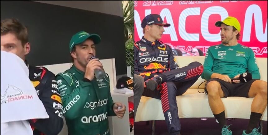 Fuera de la pista, llegaron las 'equivocaciones' del piloto de Aston Martin. Antes de la ceremonia del podio, cuando los pilotos tratan de refrescarse y relajarse después de la adrenalina de la carrera, Alonso cogió la botella de agua destinada al ganador de la carrera, dejando la que le pertenecía a él (segundo clasificado) de lado