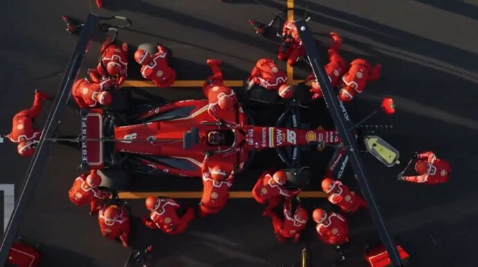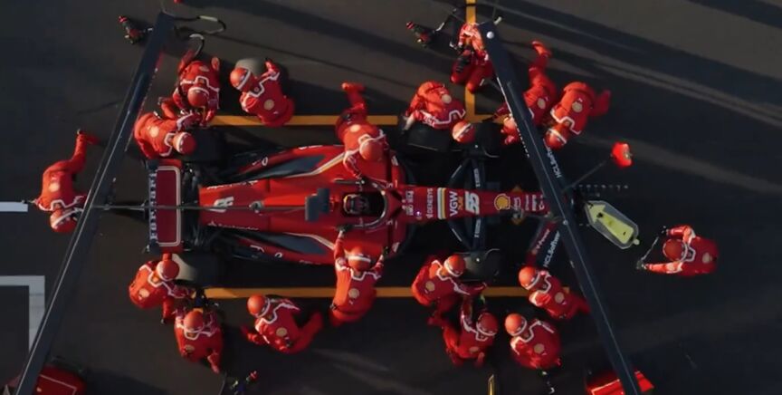 "Poetry in motion" ("Poesía en movimiento"): así titula Ferrari el vídeo que ha subido a sus redes sociales en el que se reproduce un 'pit stop' del nuevo SF-24.