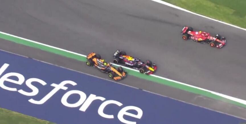 Todo comenzó en la décima vuelta de carrera. Carlos Sainz acababa de adelantar a Verstappen y Norris quería hacer lo propio para seguir la estela del madrileño. El piloto de McLaren se lanzó con todo por el exterior, pero Verstappen, igual que hizo en Austin, le expulsó de la pista.