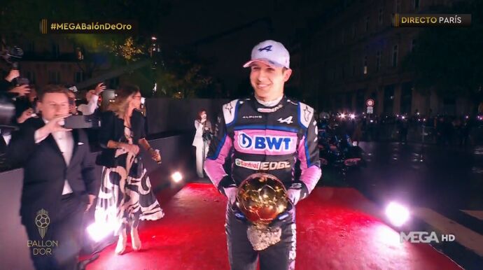El piloto francés de la escudería Alpine llegó con su Fórmula 1 a la gala... ¡y llevaba el Balón de Oro en la parte superior!