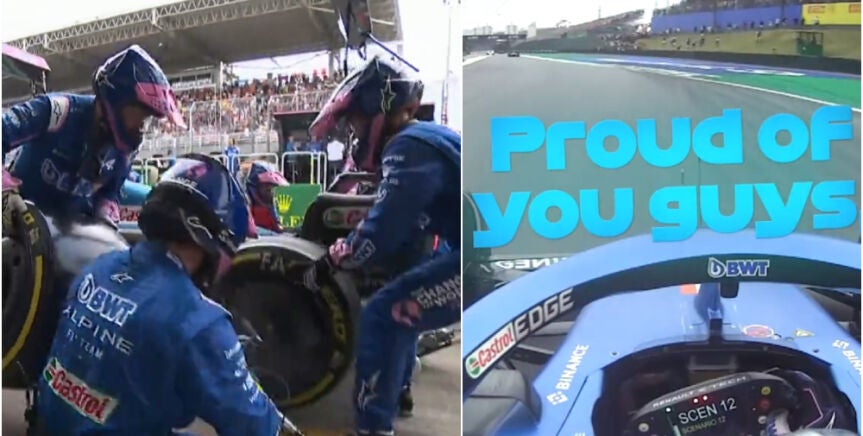 La segunda parada de Fernando Alonso con su Alpine es para olvidar #BrasilDAZNF1 🇧🇷 pic.twitter.com/b011QnrEjl