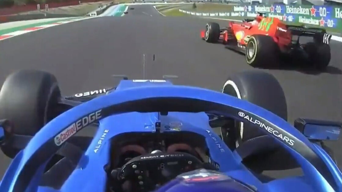 Fernando Alonso y Carlos Sainz se vieron las caras en la pista de Portugal. El asturiano sobrepasó al Ferrari en la vuelta 59 en Portimao en un bonito duelo entre rivales... y amigos.