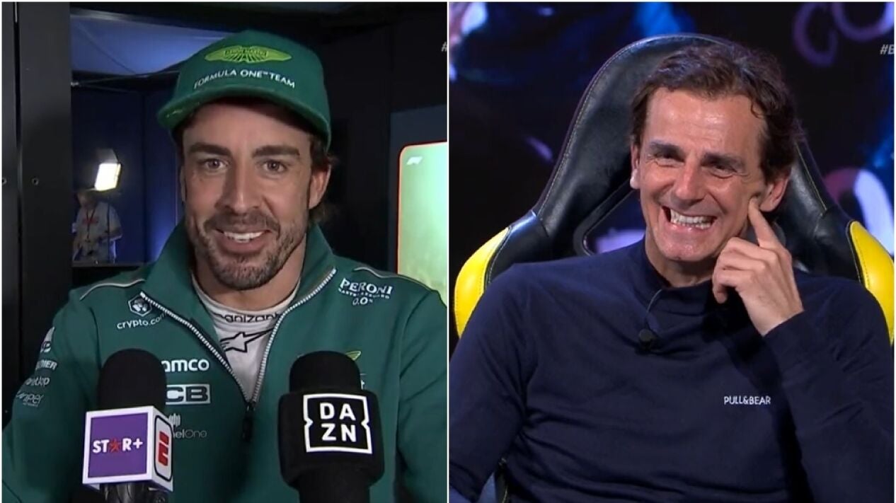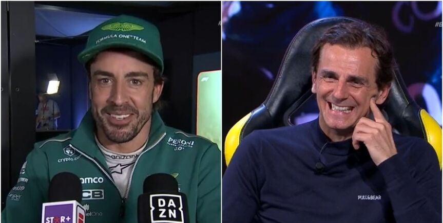 En declaraciones a 'DAZN' tras la carrera, víctima de su efusividad, Alonso le dejó un curioso vacile a Pedro de la Rosa después de que los compañeros del embajador de Aston Martin le dijesen al piloto que estaba "muy nervioso".