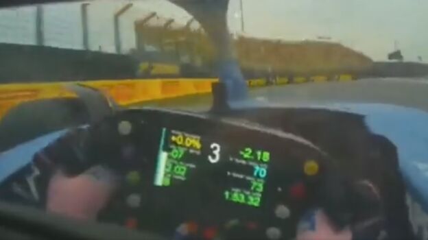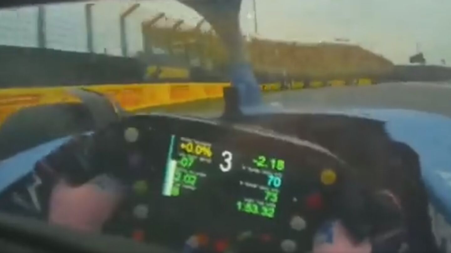 Antes de entrar a boxes, en la última chicane del circuito, el bicampeón del mundo de F1 se hizo un 'recto', evitó hacer el giro y ganó así unos segundos antes de entrar al pit-lane que le evitaron salir detrás de otros dos coches.