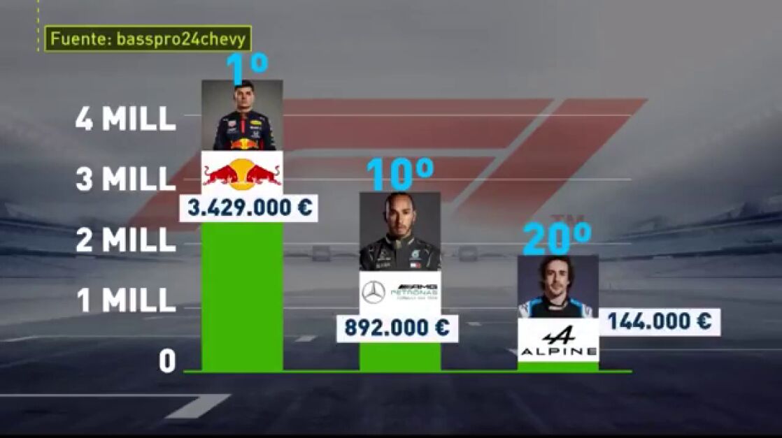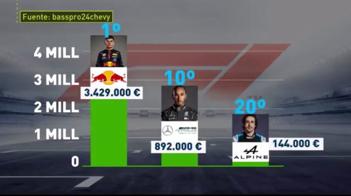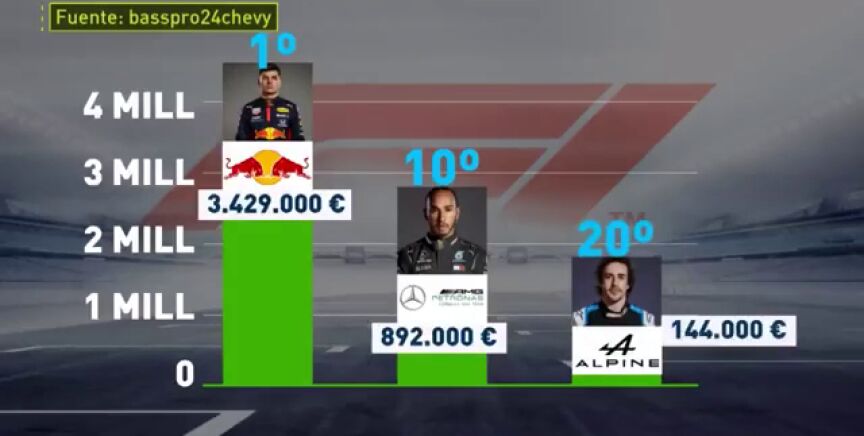 Con respecto a los equipos, Red Bull aparece en cabeza con más de 4 millones de euros en gastos con sus dos pilotos, seguidos de Ferrari (3,6 millones). En última posición asoma Alpine.