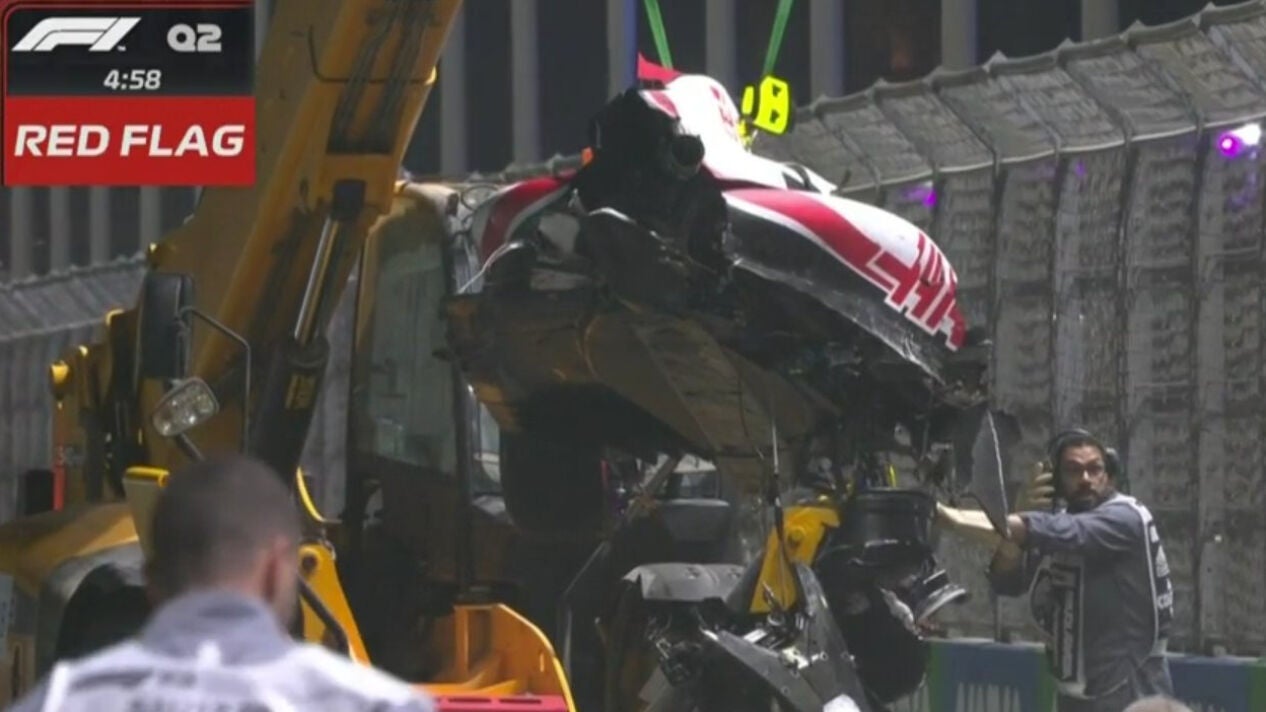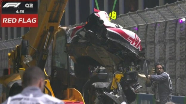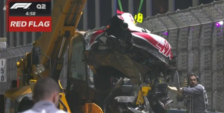 Mick Schumacher dejó enmudecida a la Fórmula 1. El alemán sufrió un tremendo accidente con el Haas durante el transcurso de la Q2 del GP de Arabia Saudita que hizo que el coche, al intentar llevárselo la grúa, terminase partido en dos.