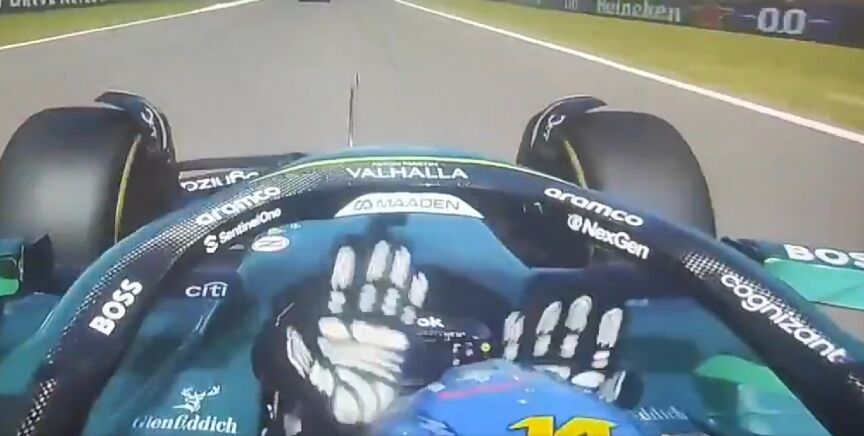 El piloto asturiano de Aston Martin se golpeó con las manos en la cabeza en la última vuelta de la carrera mientras intentaba adelantar a Yuki Tsunoda.