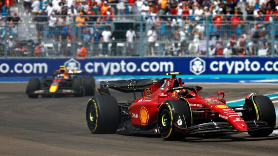 Carlos Sainz tienen un nuevo podio en la Fórmula 1. El madrileño ha luchado hasta la última vuelta de este GP de Miami, nuevo GP de Miami, con un Sergio Pérez que tenía mejores neumáticos que él pero que ha terminado cediendo ante un piloto de Ferrari excelso en su defensa.