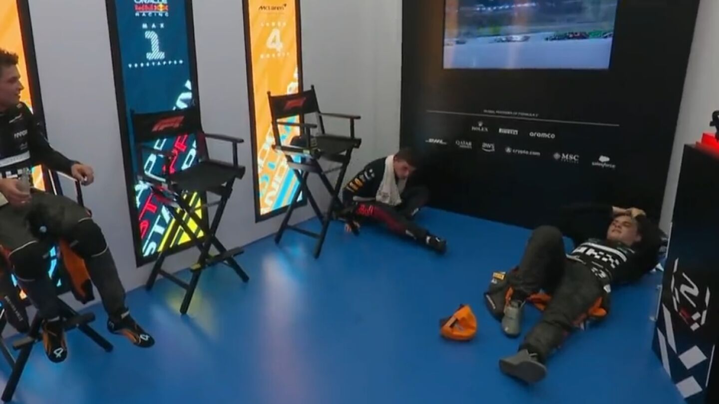 La imagen que demuestra la dureza de Qatar: Verstappen, Piastri y Norris, exhaustos antes del podio