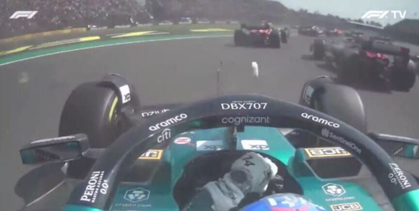 Sin embargo, los daños y el mal momento en el equipo británico no es tan alarmante ya que, tal y como demuestran las imágenes de Fernando Alonso en la salida, el ovetense no pudo hacer nada por esquivar los restos y la suciedad derivados del incidente entre 'Checo' Pérez y Charles Leclerc.
