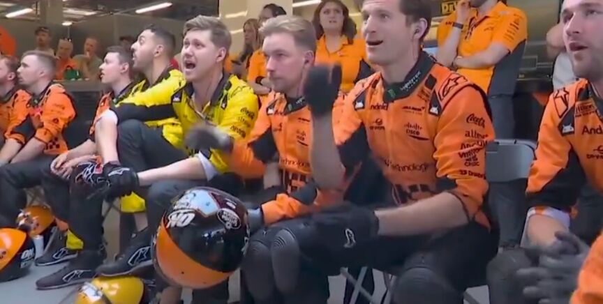 La imperdible reacción en el garaje de McLaren a la batalla entre Carlos Sainz y 'Checo' Pérez