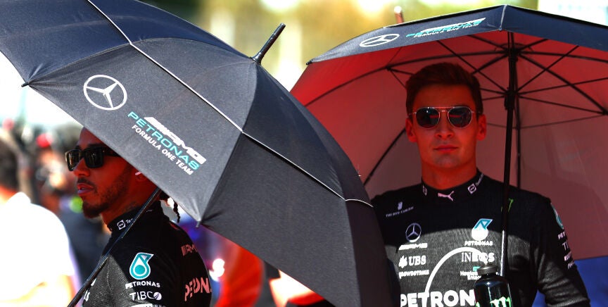 A pesar de ser su peor temporada en muchos años, las balas plateadas han ido de menos a más y en algunas carreras han demostrado tener más ritmo que Ferrari. Son terceros en el mundial de constructores, a 66 puntos de Ferrari. Russell es cuarto en el mundial de pilotos con 203 puntos y Hamilton sexto con 170. Entre medias de los dos, está Carlos Sainz, con 202 puntos. Ya más lejos, Sergio Pérez tiene 235 y Charles Leclerc 237.