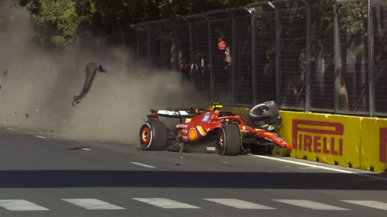 Lío total en Bakú: así fue el fortísimo accidente entre Carlos Sainz y Sergio Pérez al final del GP de Azerbaiyán